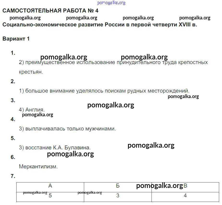Готовые ответы - История 7 класс рабочая тетрадь. Тематический контроль Акиньшина О.Н. - ср-5 Россия в первой четверти XVIII века Вариант 1