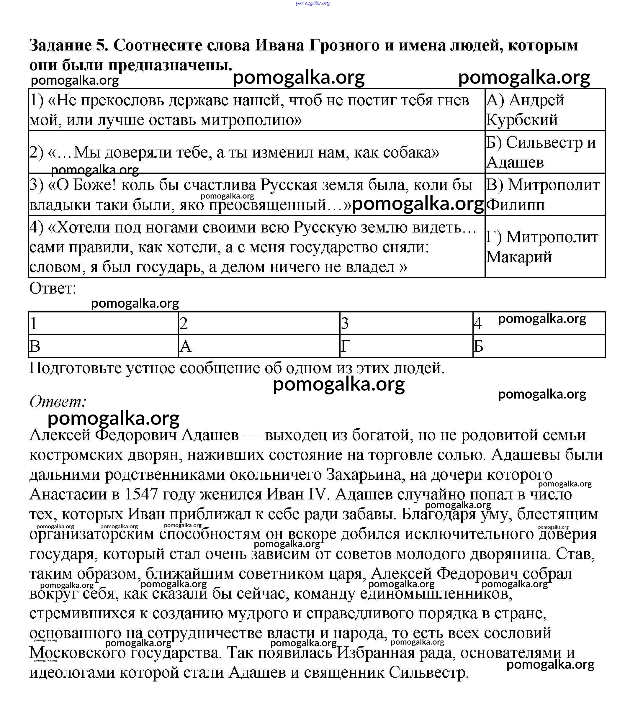 Готовые ответы - История России 7 класс рабочая тетрадь Данилов А.А. - §10 5