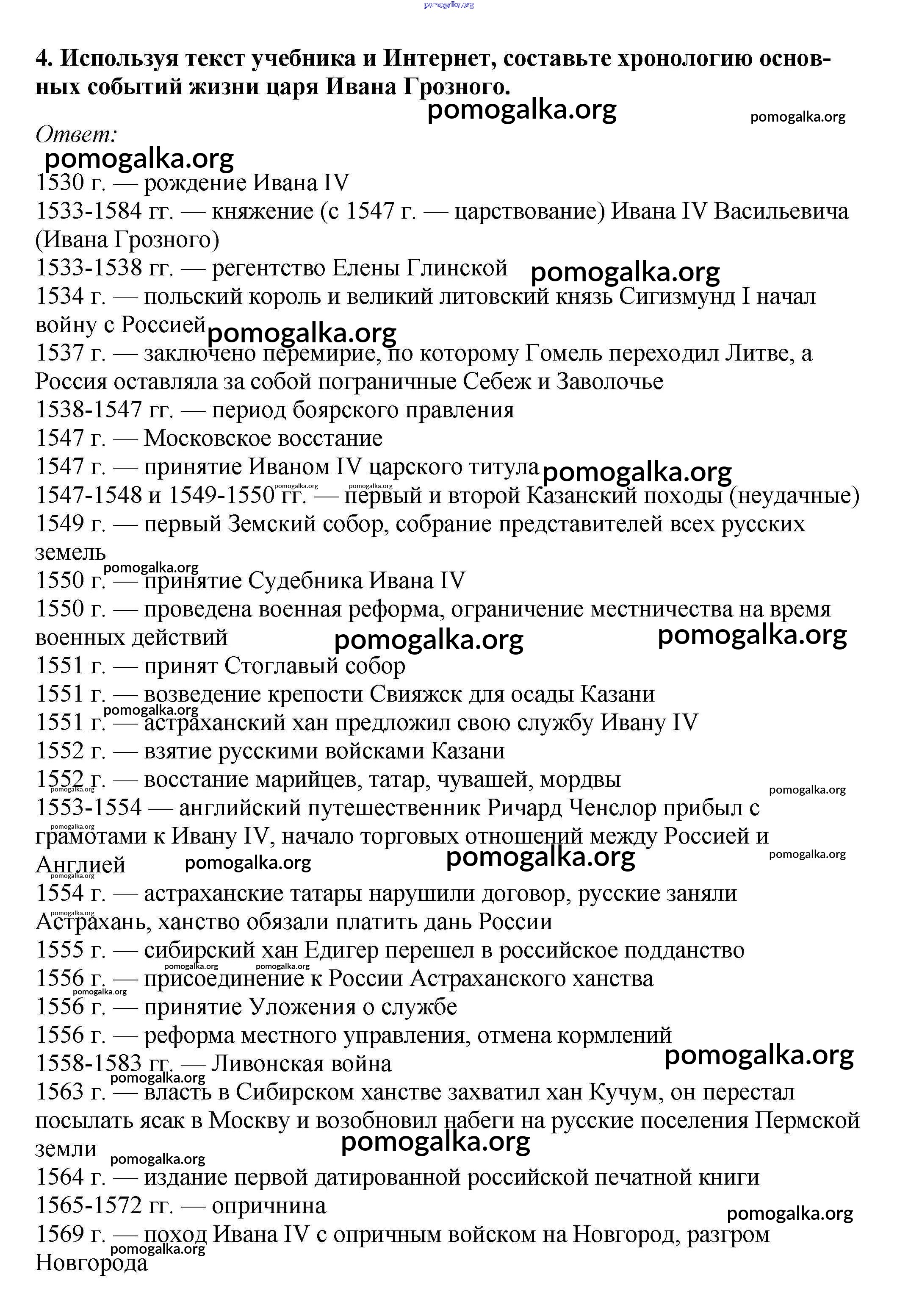 § 7—8. Внешняя политика России во второй половине XVI в. №1-7