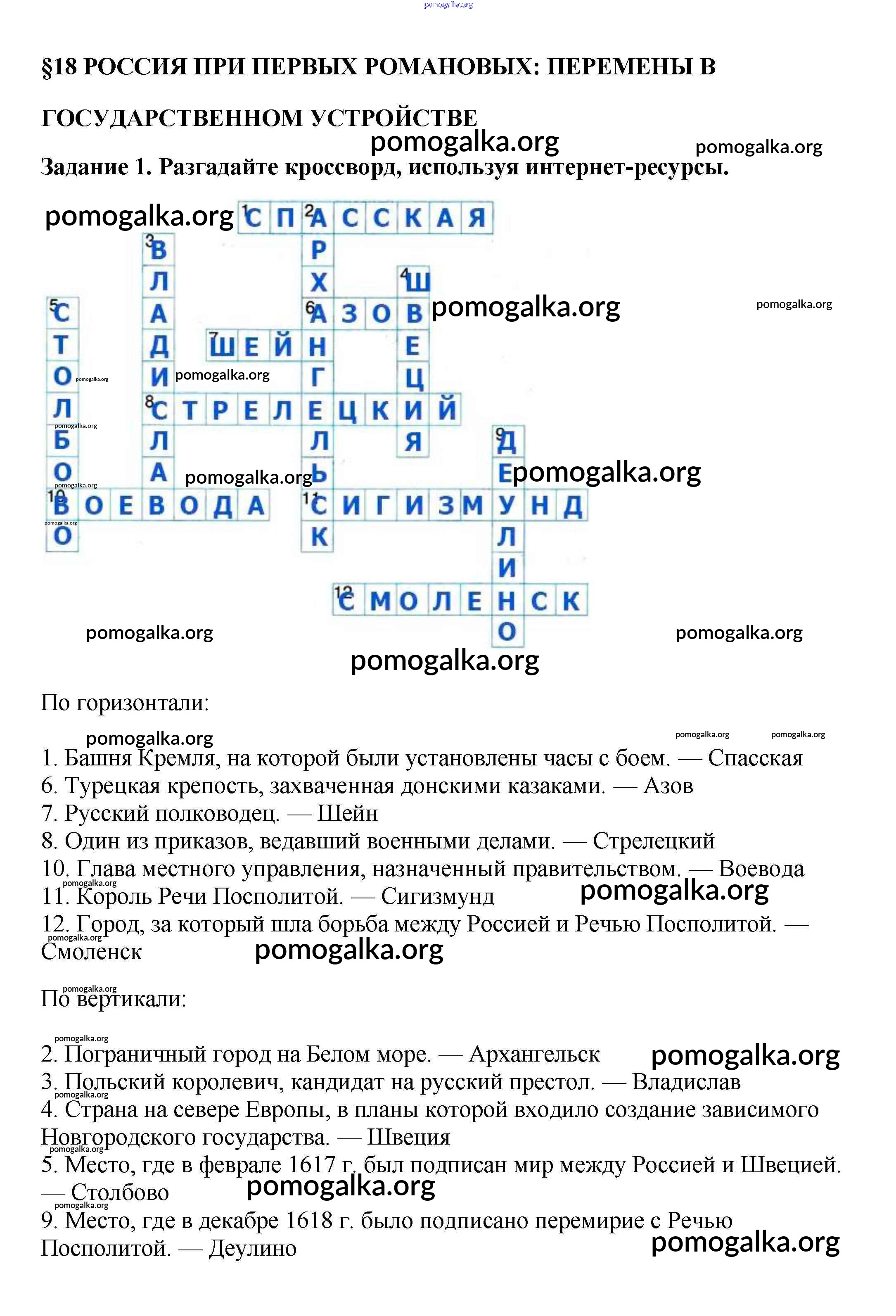 Готовые ответы - История России 7 класс рабочая тетрадь Данилов А.А. - §18 1