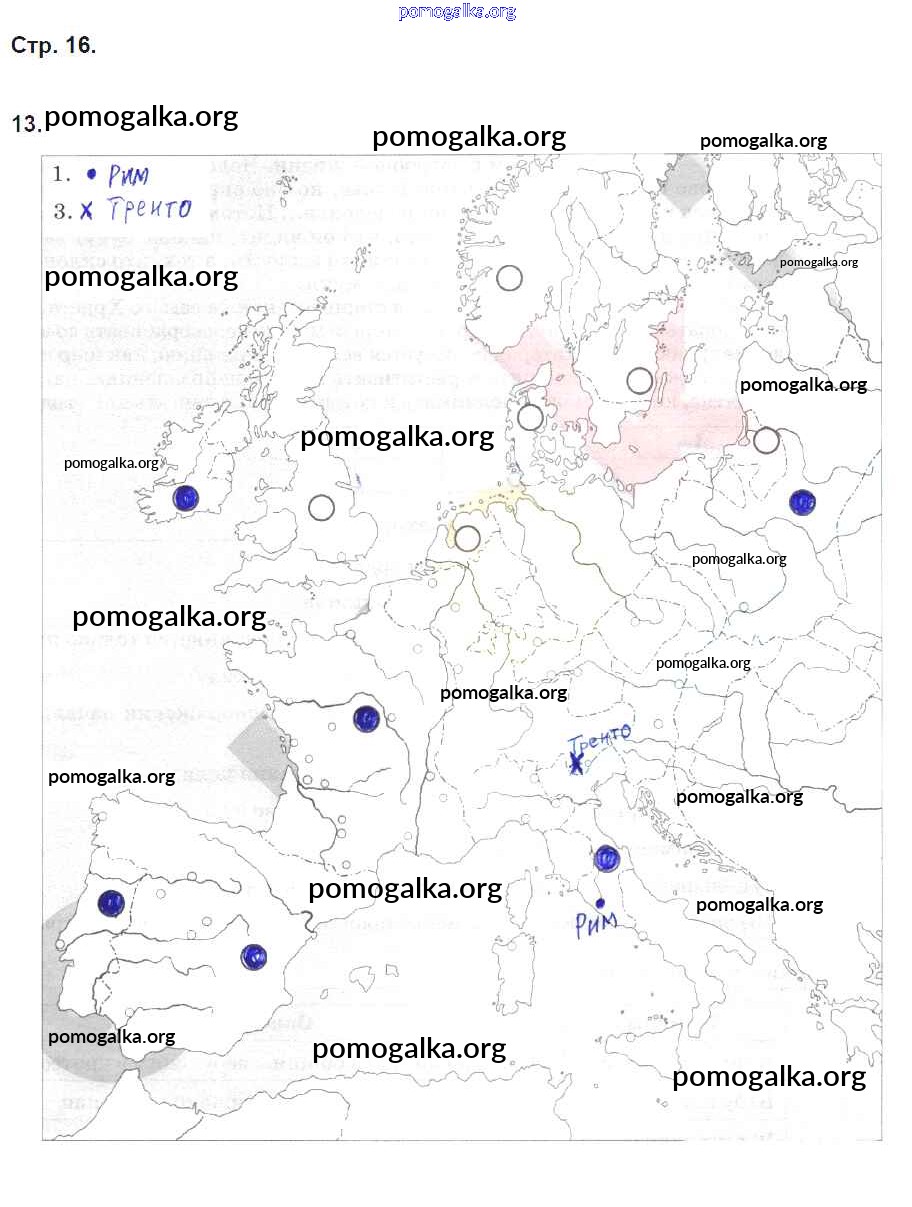 Готовые ответы - История 7 класс рабочая тетрадь с контурными картами Волкова Е.В. - страница 16