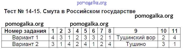 Готовые ответы - История 7 класс тесты Воробьёва С.Е. - часть 2. тест 14