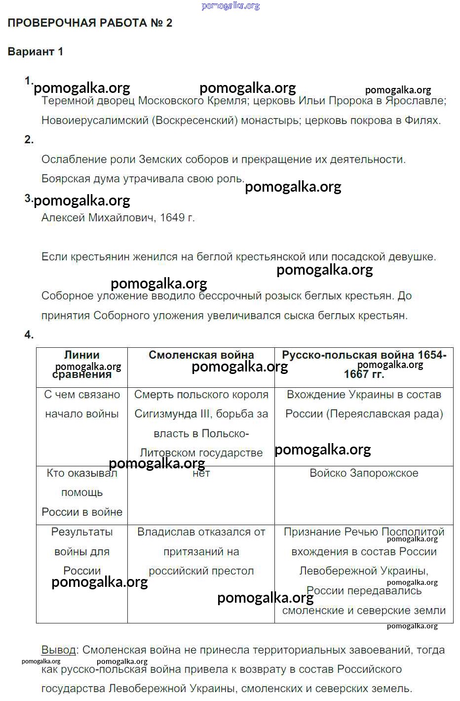 Готовые ответы - История 7 класс тетрадь-экзаменатор Артасов И.А. - ПР-2 Россия в XVII в. Вариант 1