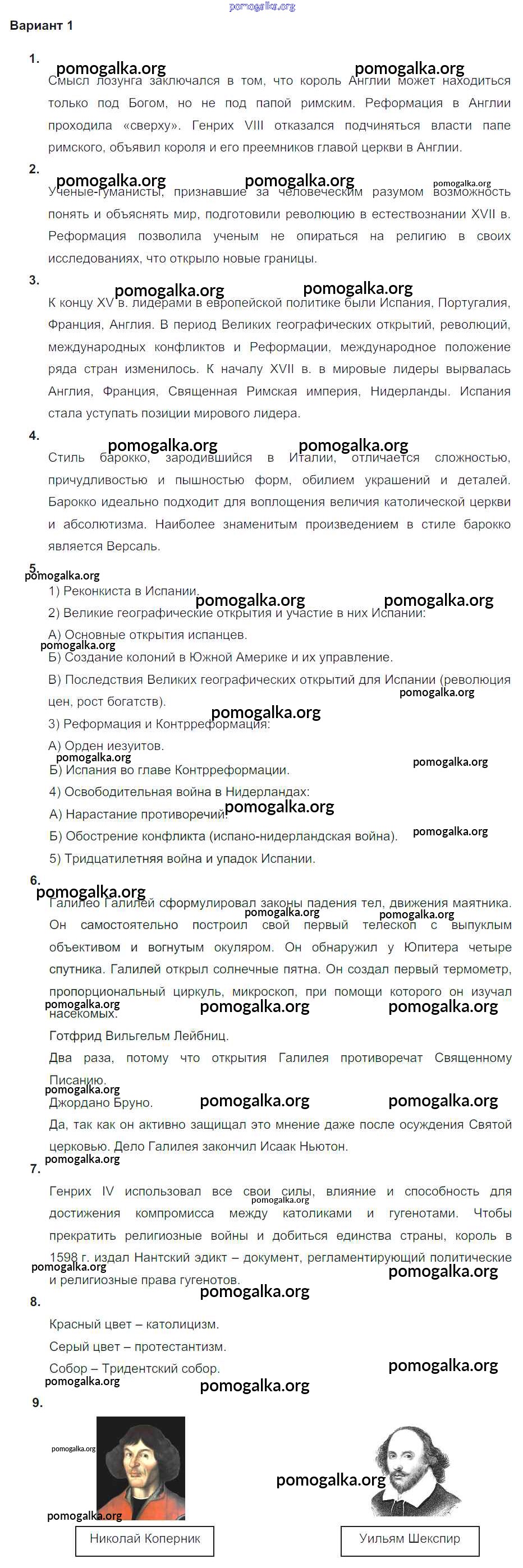 Готовые ответы - История 7 класс тетрадь-экзаменатор Уколова И.Е. - проверочная работа 2 Европа в XVI-XVII в веках-традиции и новизна Вариант 1