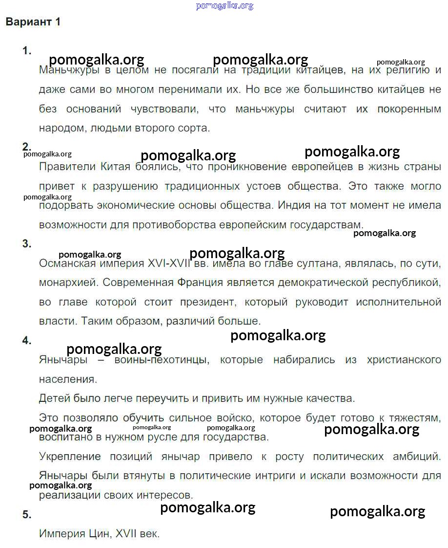 Готовые ответы - История 7 класс тетрадь-экзаменатор Уколова И.Е. - проверочная работа 2 страны Востока в XVI-XVIII в веках Вариант 1
