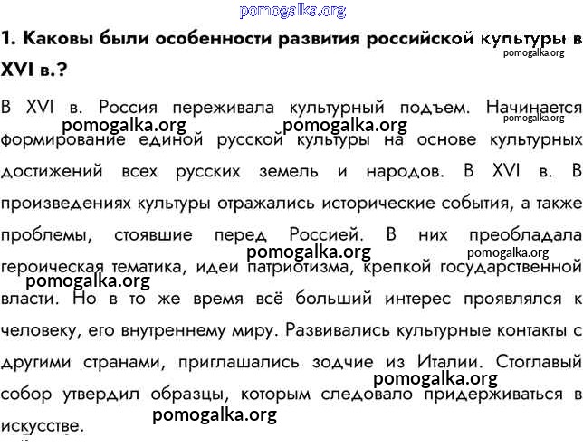 Готовые ответы - История России 7 класс Арсентьев Н.М. - вопрос, задание культура и повседневная жизнь народов России в XVI в. 1