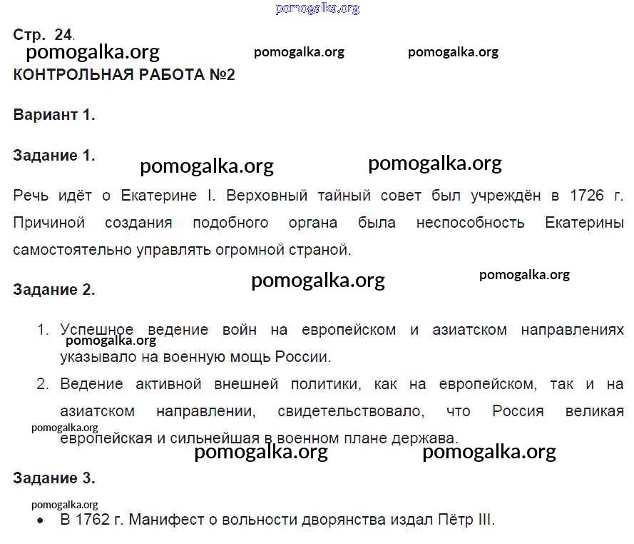 Готовые ответы - История 8 класс контрольные работы Артасов И.А. - страница 24