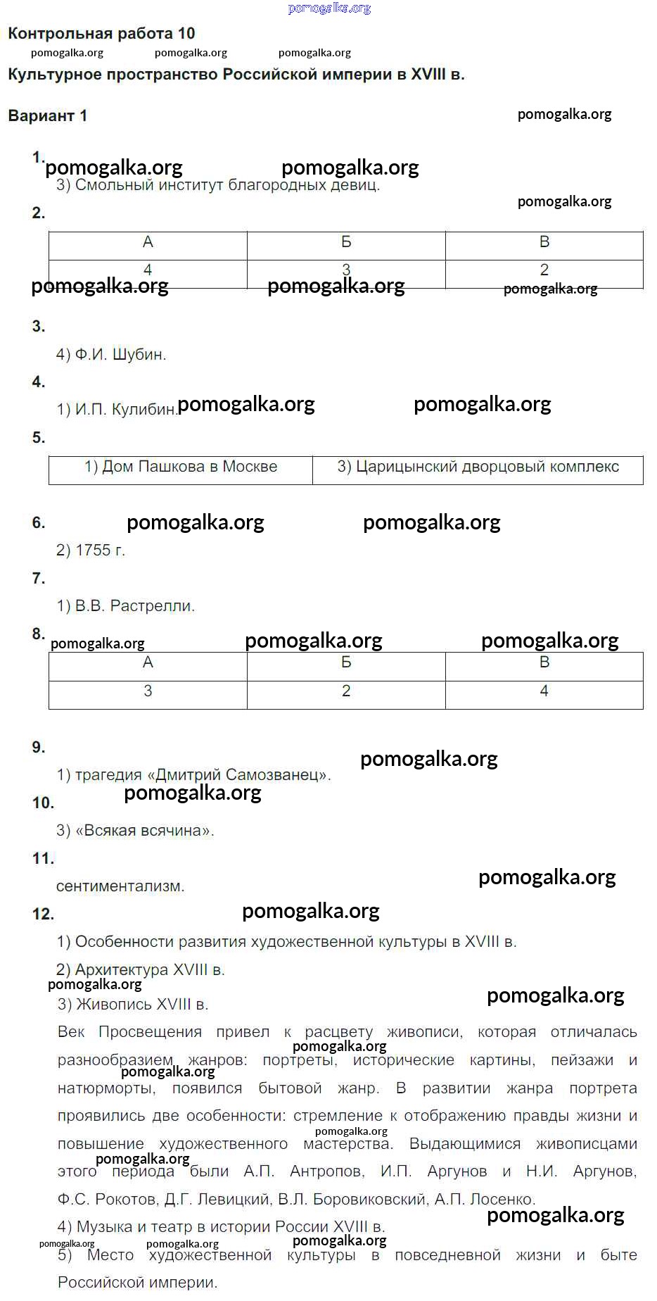 Готовые ответы - История России 8 класс контрольные работы Соловьёв Я.В. (к уч. Торкунова А.В.) - кр-10. вариант 1