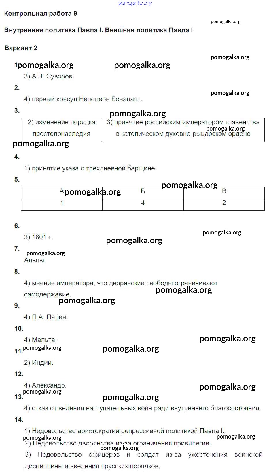 Готовые ответы - История России 8 класс контрольные работы Соловьёв Я.В. (к уч. Торкунова А.В.) - кр-9. вариант 2