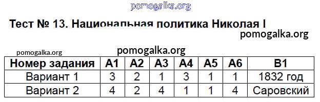 Готовые ответы - История России 8 класс КИМ Волкова К.В. - тест 13