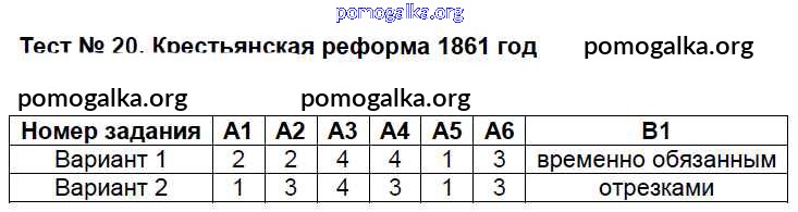 Готовые ответы - История России 8 класс КИМ Волкова К.В. - тест 20