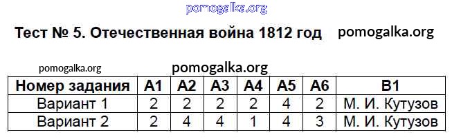 Готовые ответы - История России 8 класс КИМ Волкова К.В. - тест 5
