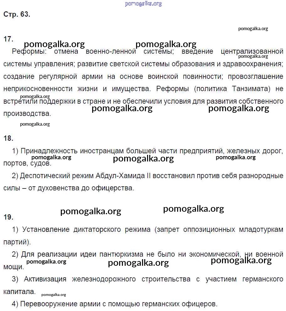 Готовые ответы - Всеобщая История 8 класс рабочая тетрадь Ермакова И.А. (к уч. Загладина Н.В.) - страница 63