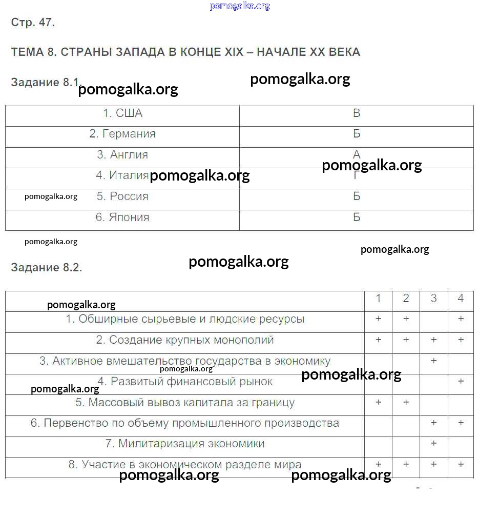 Готовые ответы - История 8 класс рабочая тетрадь с контурными картами Пономарев М.В. - страница 47