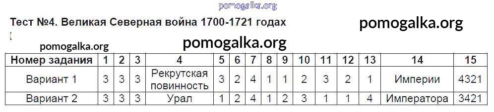 Готовые ответы - История России 8 класс тесты Воробьёва С.Е. (к новому уч. Торкунова А.В.) - тест 4
