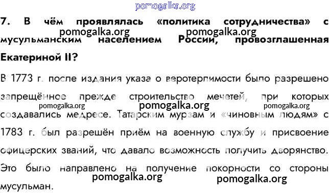 глава 3 / народы России. Национальная и религиозная политика Екатерины II / вопрос, задание / 7