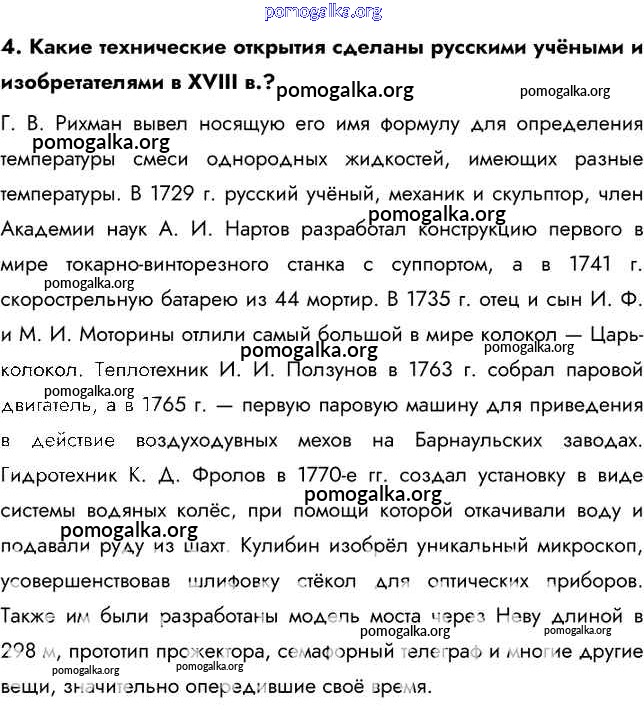 Готовые ответы - История России 8 класс Арсентьев Н.М. - вопрос, задание российская наука и техника в XVIII в. 4