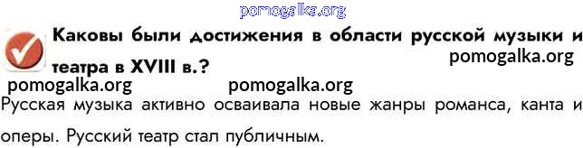 Готовые ответы - История России 8 класс Арсентьев Н.М. - вопрос в начале параграфа музыкальное и театральное искусство 1