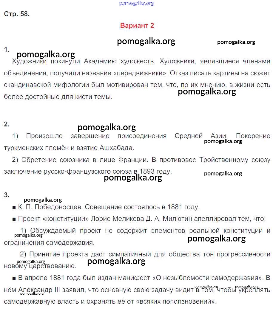 Готовые ответы - История России 9 класс контрольные работы Артасов И.А. - страница 58
