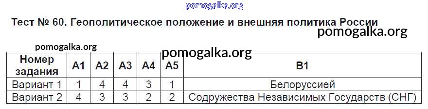 Готовые ответы - История России 9 класс КИМ Волкова К.В. - тест 60