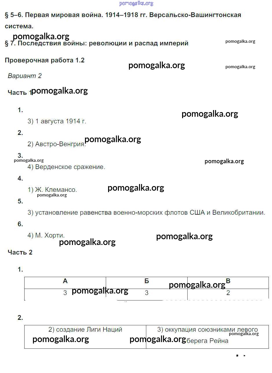 Готовые ответы - История 9 класс проверочные и контрольные работы Баранов П.А. - §5-7 проверочные работы 2