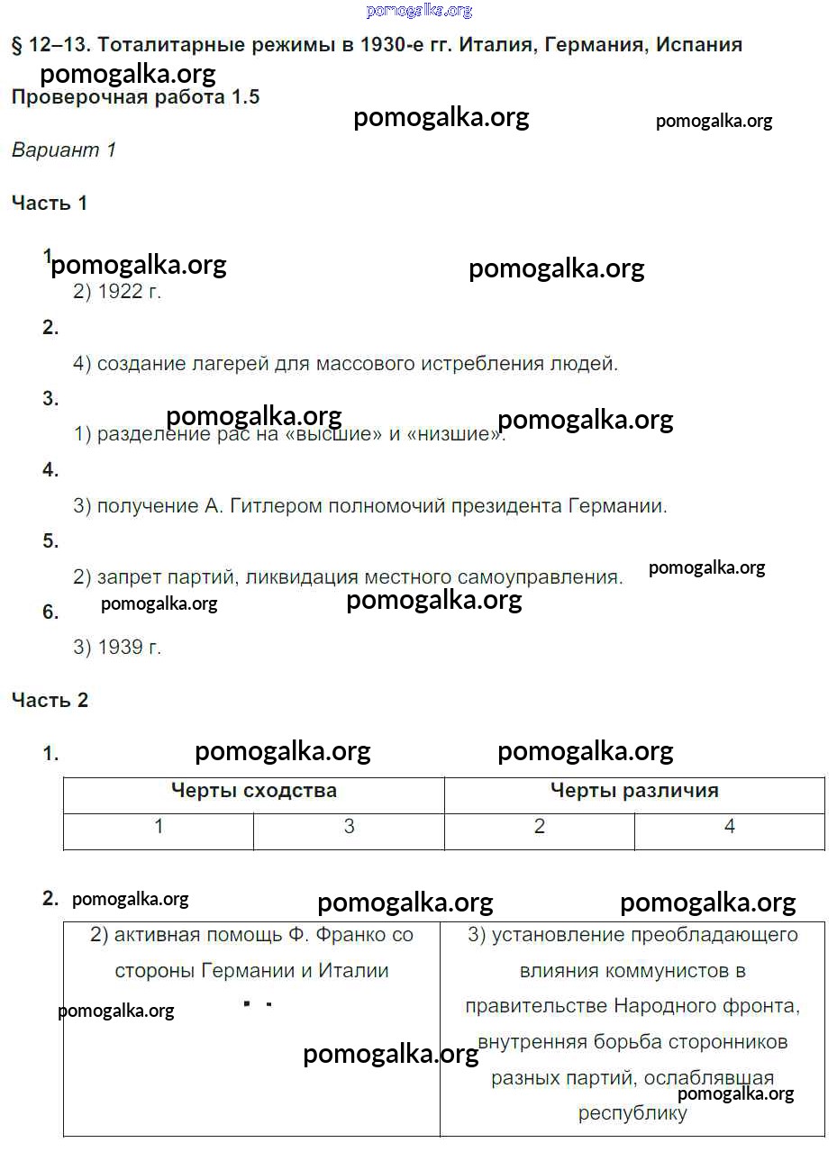 Готовые ответы - История 9 класс проверочные и контрольные работы Баранов П.А. - §12-13 проверочные работы 1