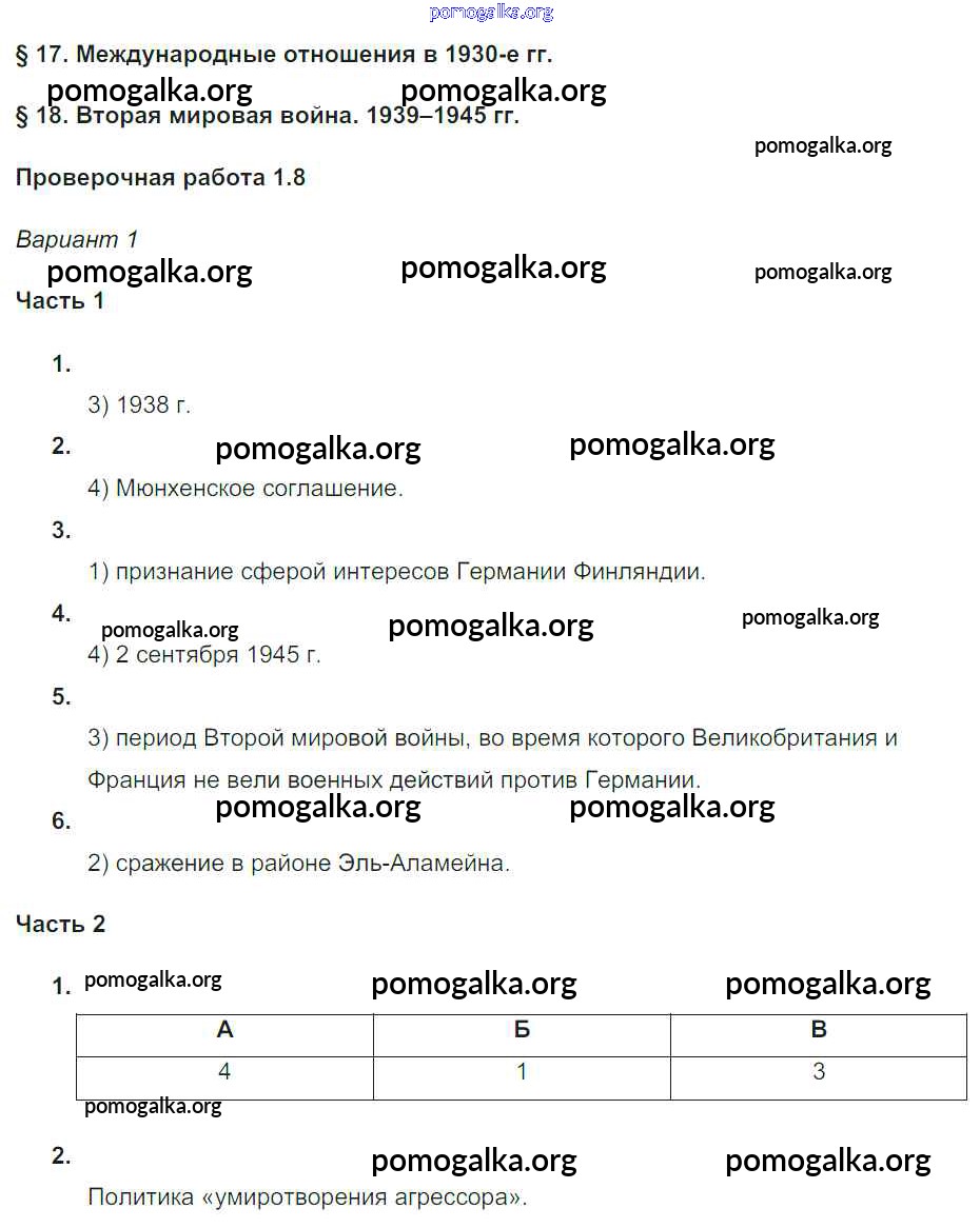 Готовые ответы - История 9 класс проверочные и контрольные работы Баранов П.А. - §17-18 проверочные работы 1