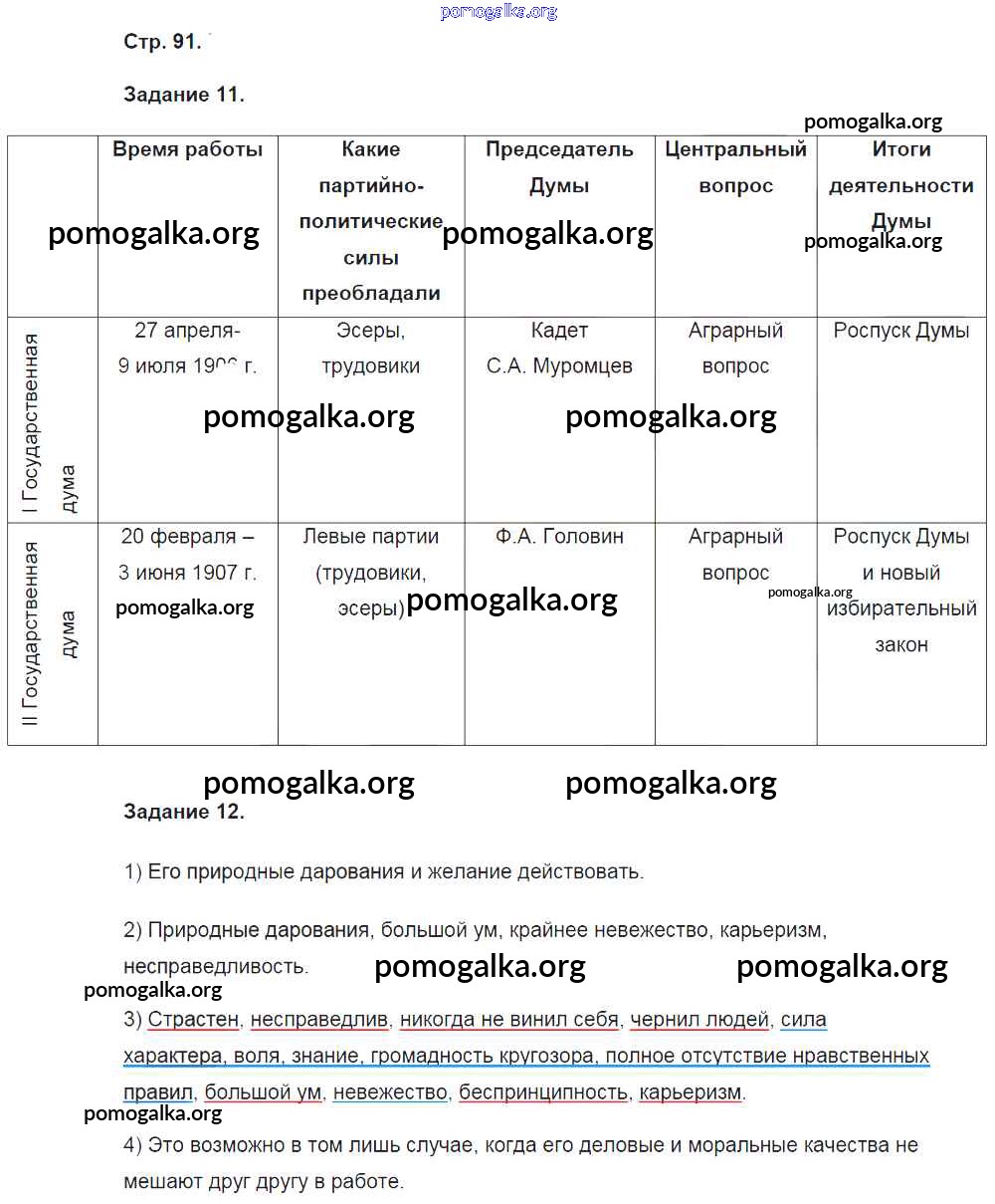 Готовые ответы - История России 9 класс рабочая тетрадь Чернова М.Н. (к уч. Торкунова А.В.) - часть 2. страница 91