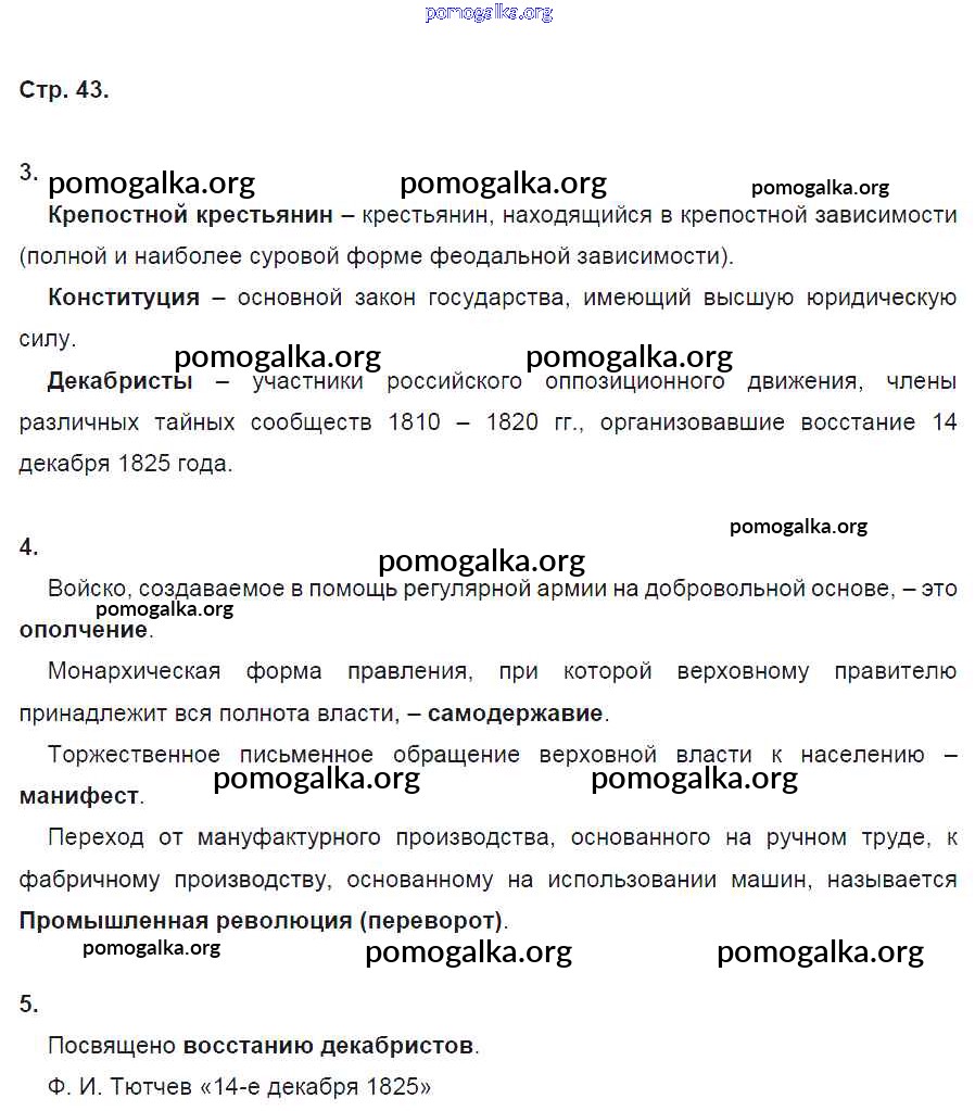 Готовые ответы - История России 9 класс рабочая тетрадь Данилов А.А. - часть 1. страница 43