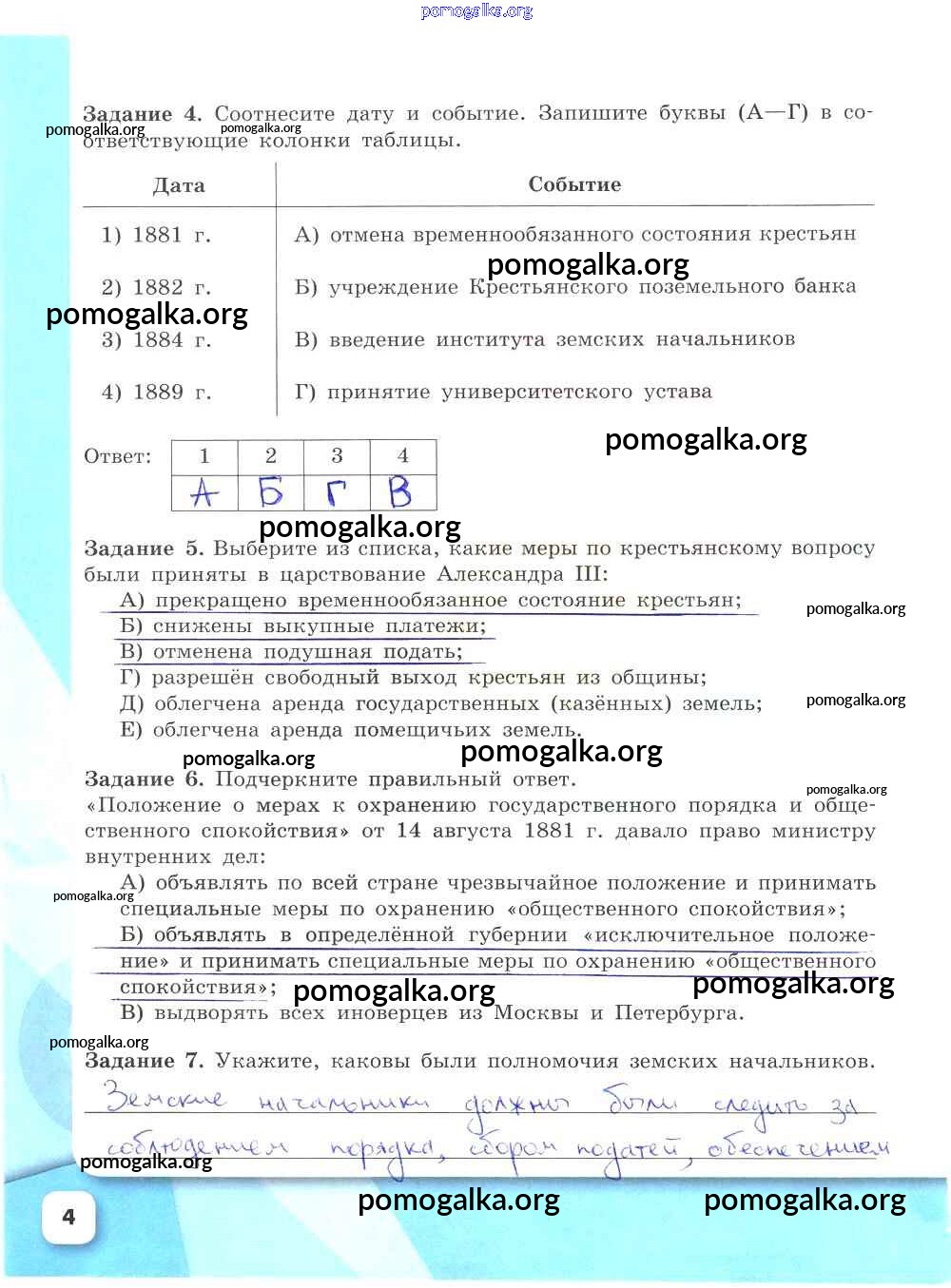 Готовые ответы - История России 9 класс рабочая тетрадь Данилов А.А. - часть 2. страница 4