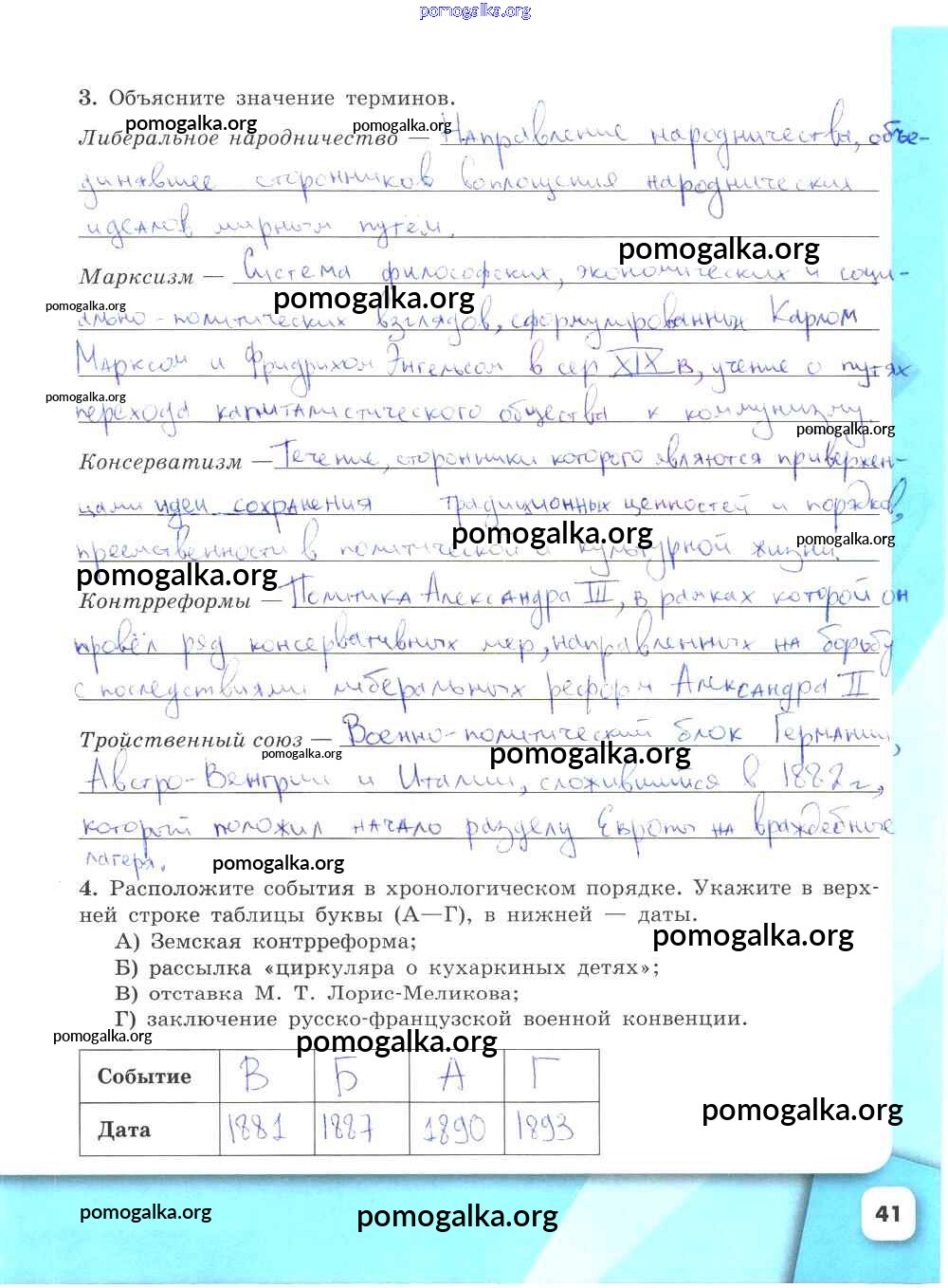 Готовые ответы - История России 9 класс рабочая тетрадь Данилов А.А. - часть 2. страница 41