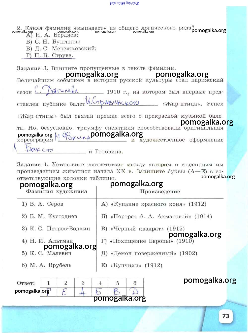 Готовые ответы - История России 9 класс рабочая тетрадь Данилов А.А. - часть 2. страница 73