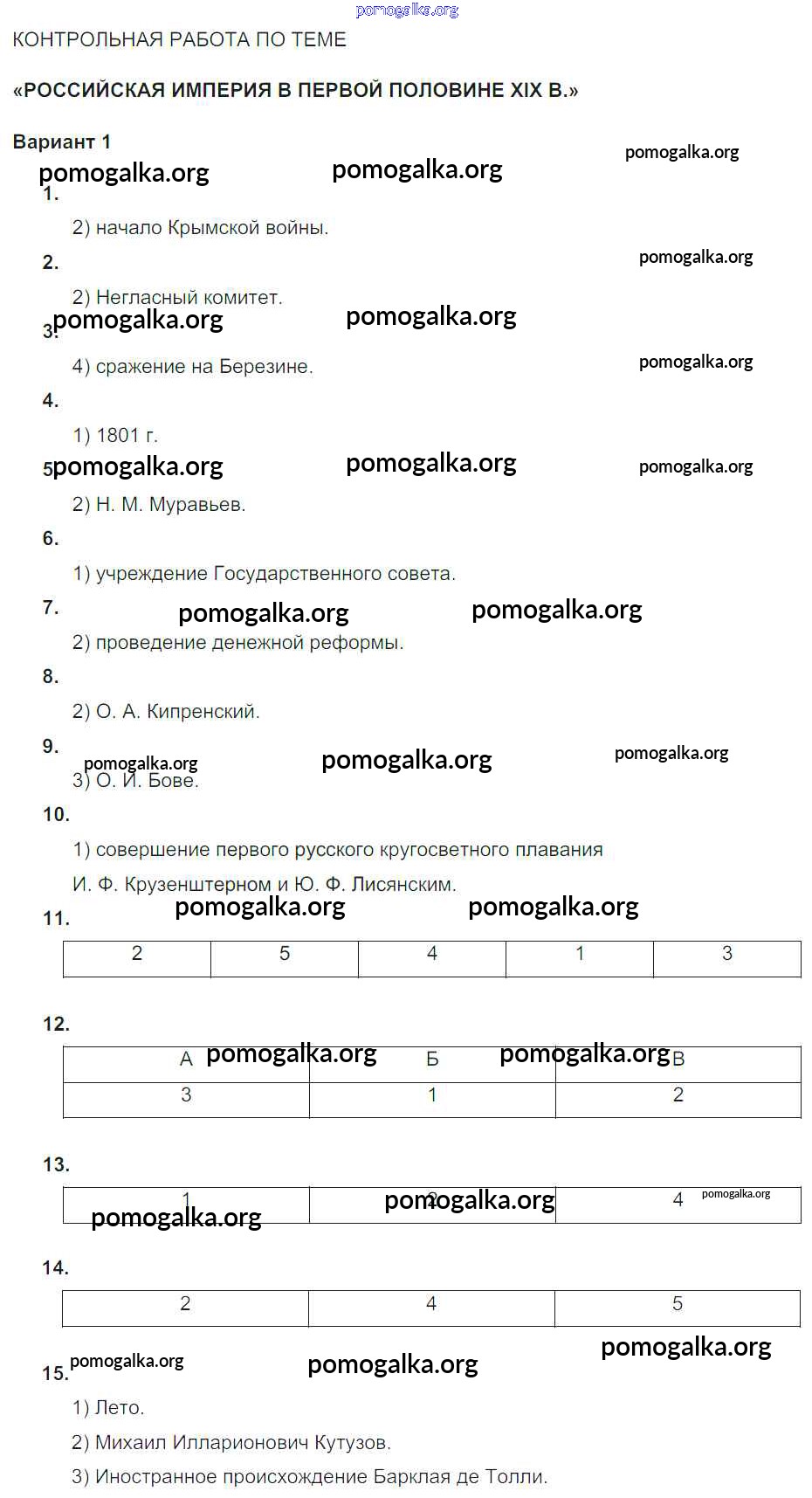 Готовые ответы - История России 9 класс тематический контроль Артасов И.А. - кр. вариант Российская империя в первой половине XIX века 1