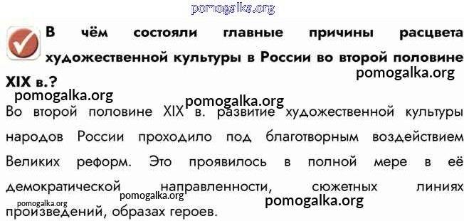 Готовые ответы - История 9 класс Арсентьев Н.М. - вопрос в начале параграфа культурное пространство империи во второй половине XIX в.: художественная культура народов России 1