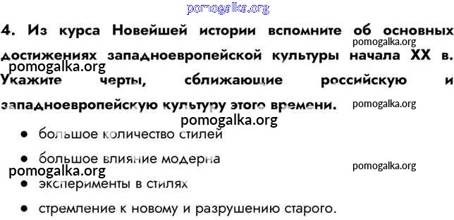 Готовые ответы - История 9 класс Арсентьев Н.М. - думаем, сравниваем, размышляем серебряный век русской культуры 4