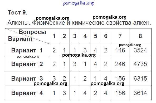Готовые ответы - Химия 10 класс тесты Боровских Т.А. - тест 9