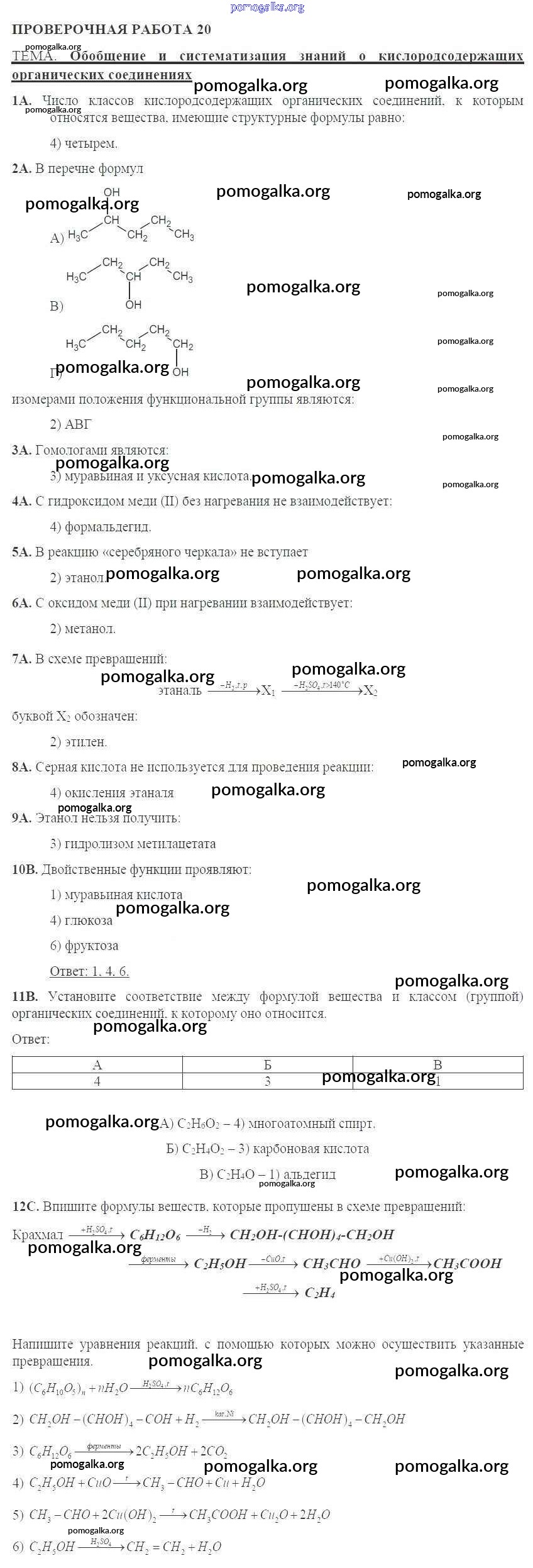 Готовые ответы - Химия 10 класс тетрадь для оценки качества знаний Габриелян О.С. - проверочная работа 20