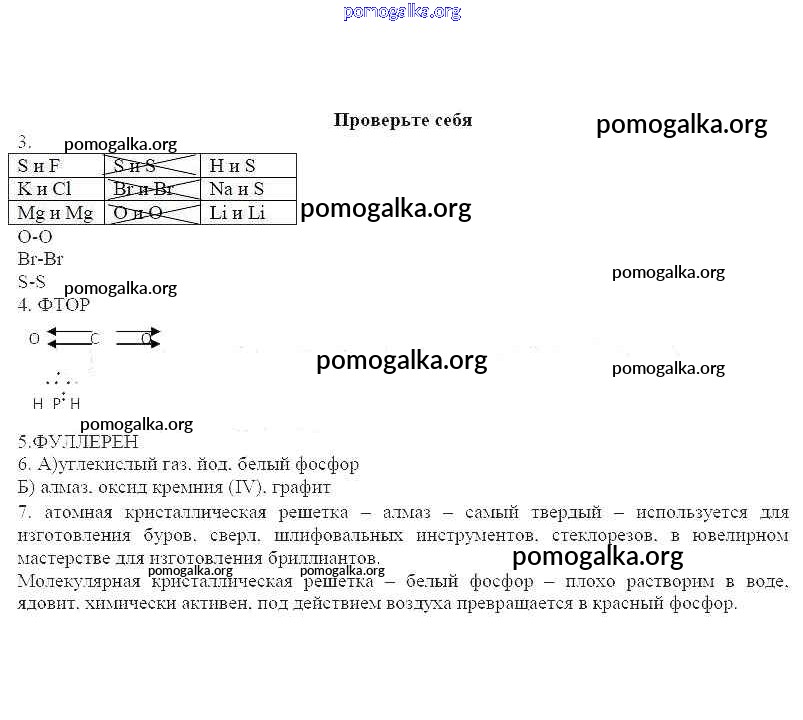 Готовые ответы - Химия 11 класс рабочая тетрадь Габриелян Базовый уровень - Ковалентная связь. Атомная и молекулярная кристаллические решеткисвязь. Ионная кристаллическая решетка Проверьте себя