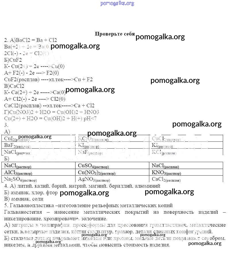 Готовые ответы - Химия 11 класс рабочая тетрадь Габриелян Базовый уровень - Электролиз Проверьте себя