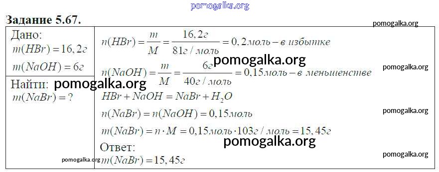 Готовые ответы - Химия 8-11 классы сборник задач и упражнений Хомченко И.Г. - глава 5 67