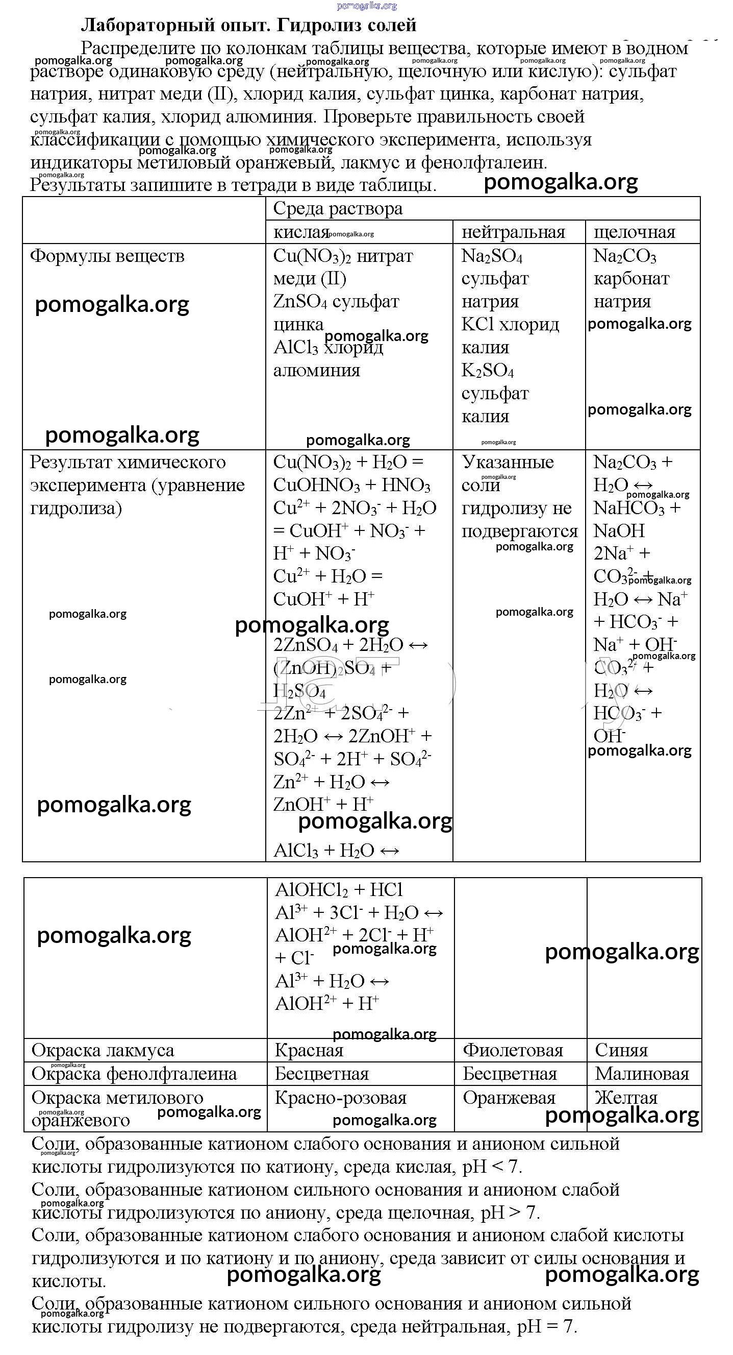 § 21. Гидролиз органических и неорганических соединений