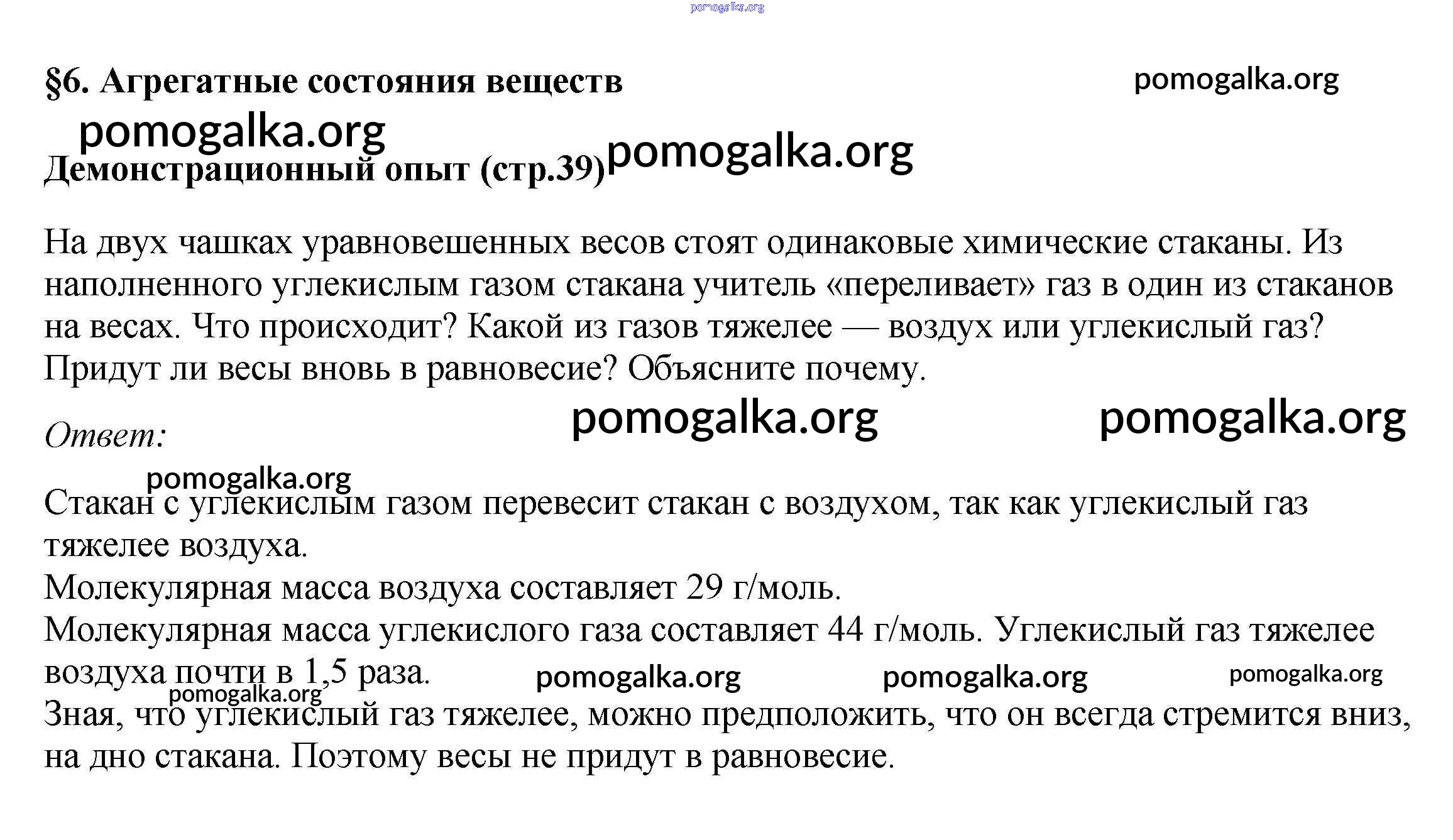Готовые ответы - Химия 7 класс Габриелян Остроумов - демонстрационный опыт §6 стр.39