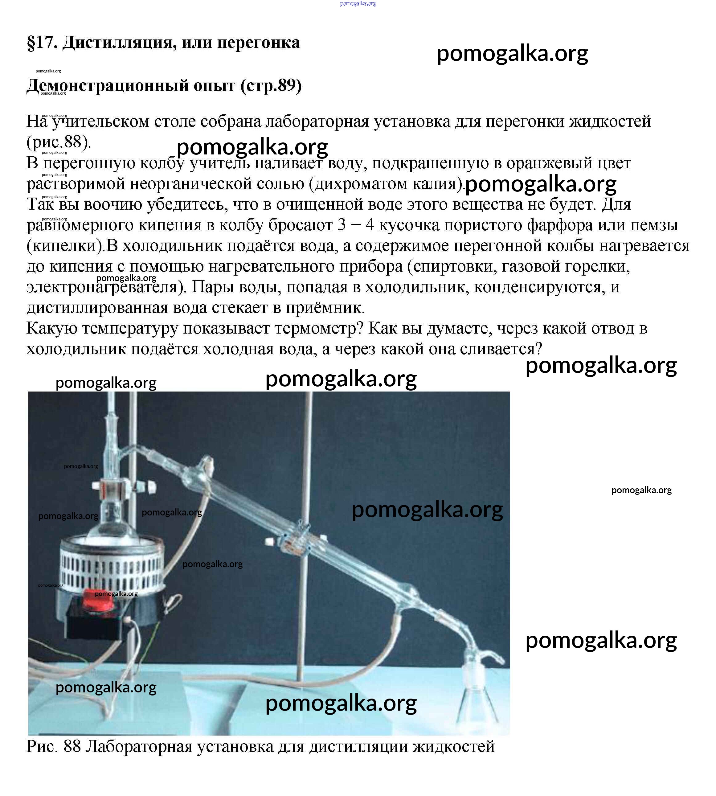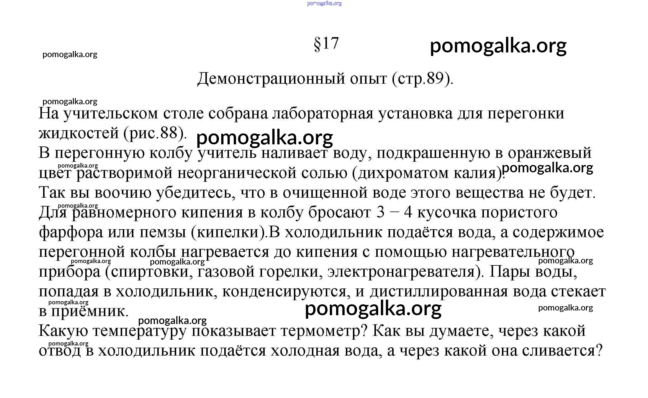 Готовые ответы - Химия 7 класс Габриелян Остроумов - демонстрационный опыт §17 стр.89