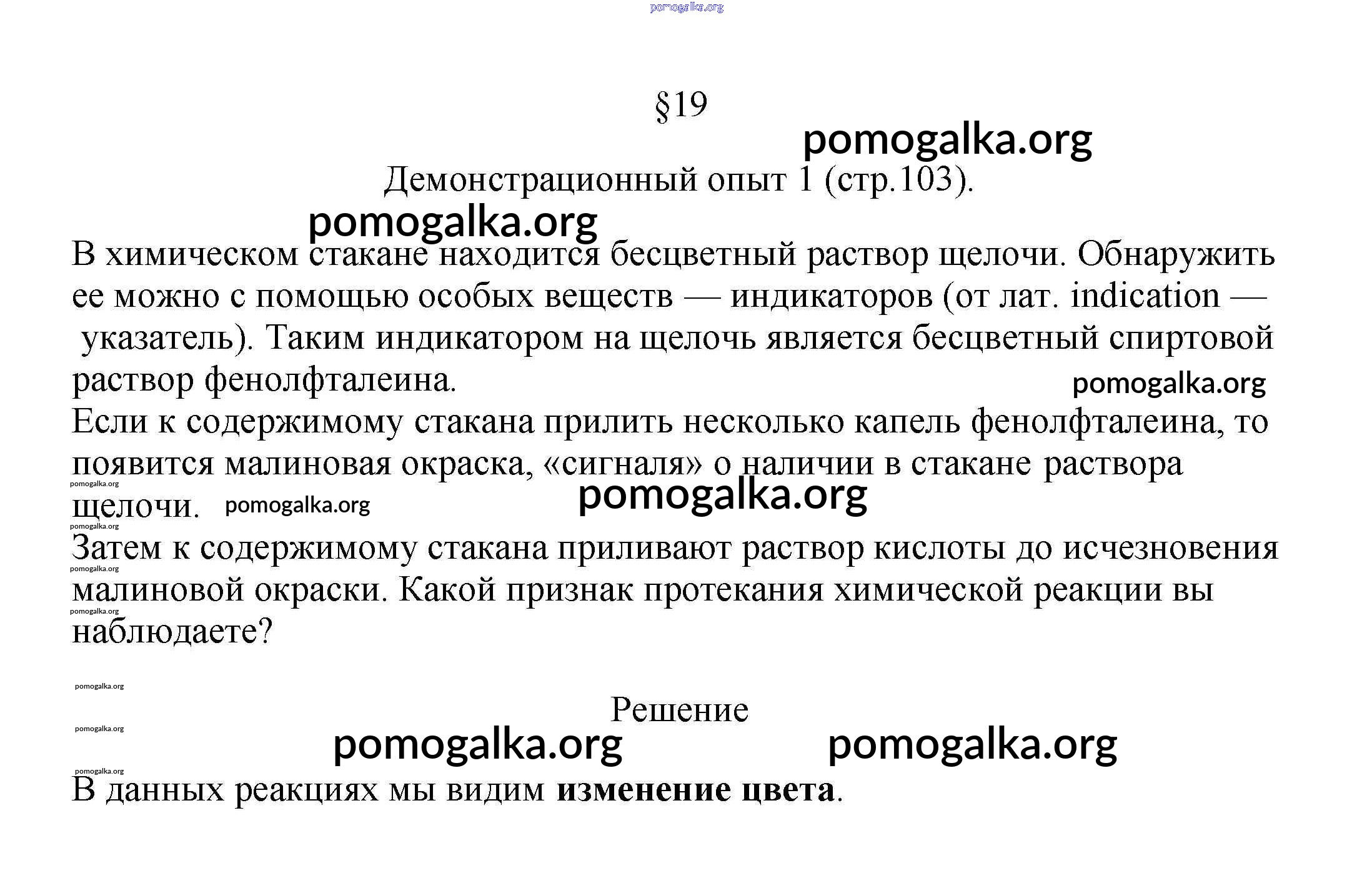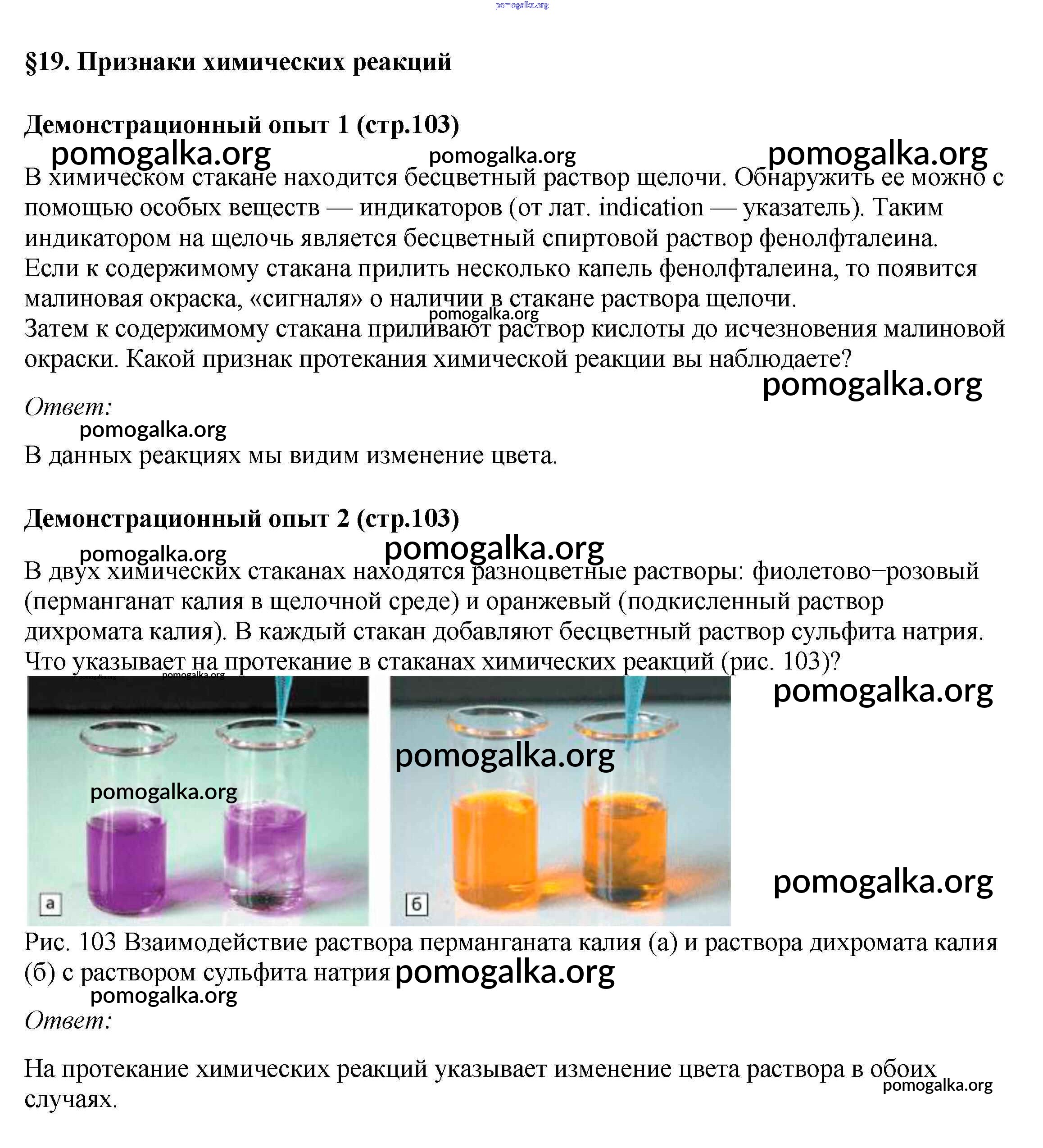 Готовые ответы - Химия 7 класс Габриелян Остроумов - демонстрационный опыт §19 стр.103