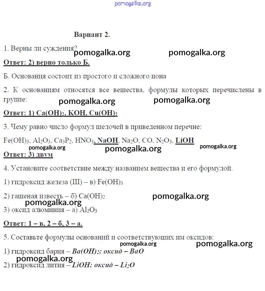 Готовые ответы - Химия 8 класс контрольные работы Габриелян О.С. - пр-12. вариант проверочная работа 2