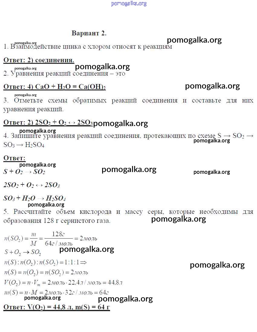 Готовые ответы - Химия 8 класс контрольные работы Габриелян О.С. - пр-18. вариант проверочная работа 2
