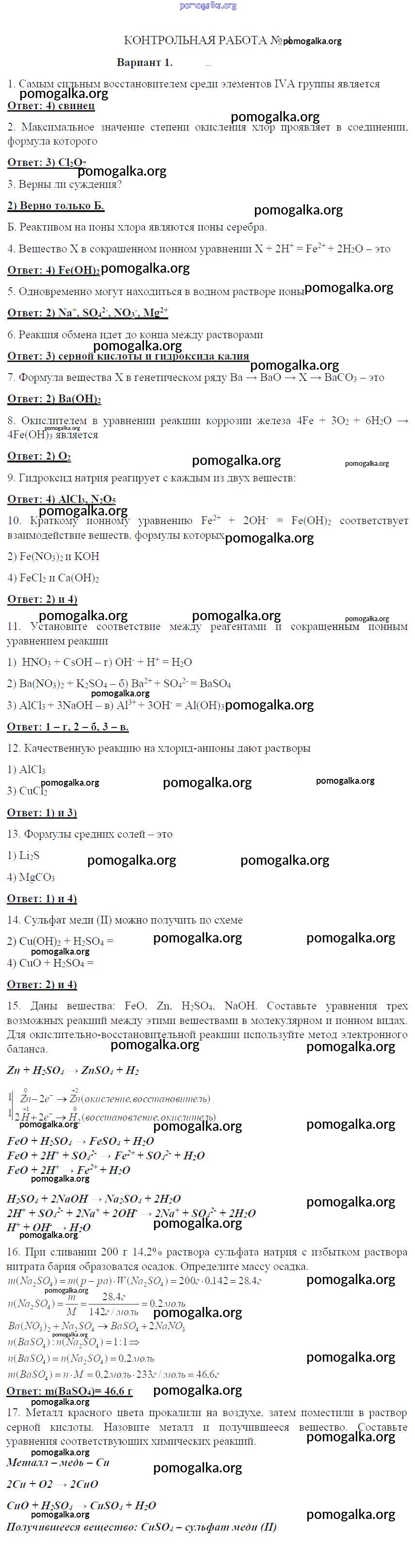 Готовые ответы - Химия 8 класс контрольные работы Габриелян О.С. - кр-4. вариант контрольная работа 1