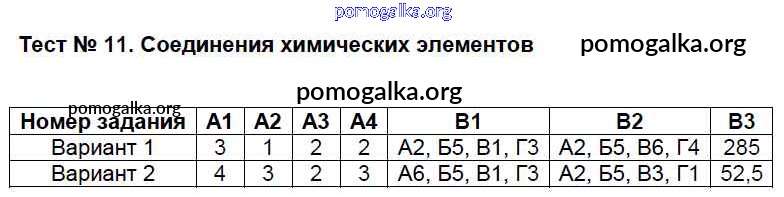 Готовые ответы - Химия 8 класс КИМ Троегубова Н.П. - тест 11