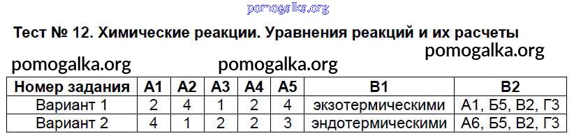 Готовые ответы - Химия 8 класс КИМ Троегубова Н.П. - тест 12