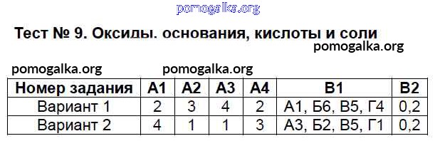 Готовые ответы - Химия 8 класс КИМ Троегубова Н.П. - тест 9